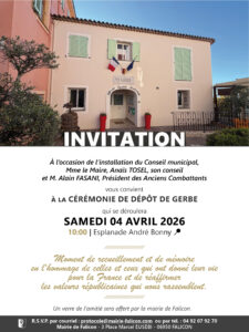 17 mars / 8 h 00 min - 15 avril / 17 h 00 minCÉRÉMONIE – DÉPÔT DE GERBE NOUVEAU CONSEIL MUNICIPAL