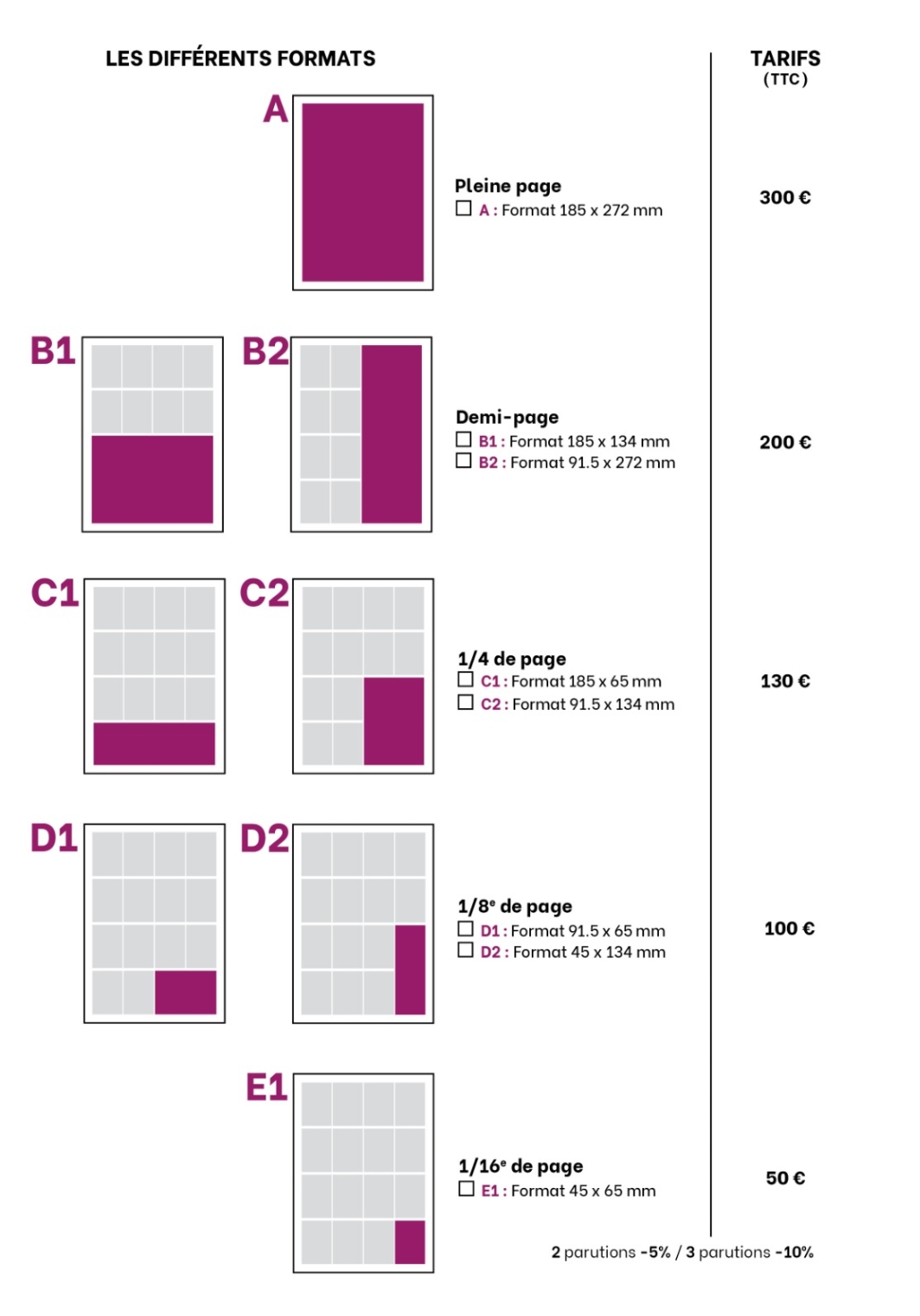 ▶️ La municipalité souhaite rendre plus accessible les colonnes du Bulletin municipal aux acteurs économiques, une nouvelle grille tarifaire a été élaborée et délibérée lors du dernier Conseil Municipal (13 octobre 2020). Le rythme de parution est a minima deux parutions annuelles. Il est habituellement distribué à plus de 1 200 exemplaires dans chaque foyer, ainsi que dans les différents lieux publics de la commune et consultable en ligne.