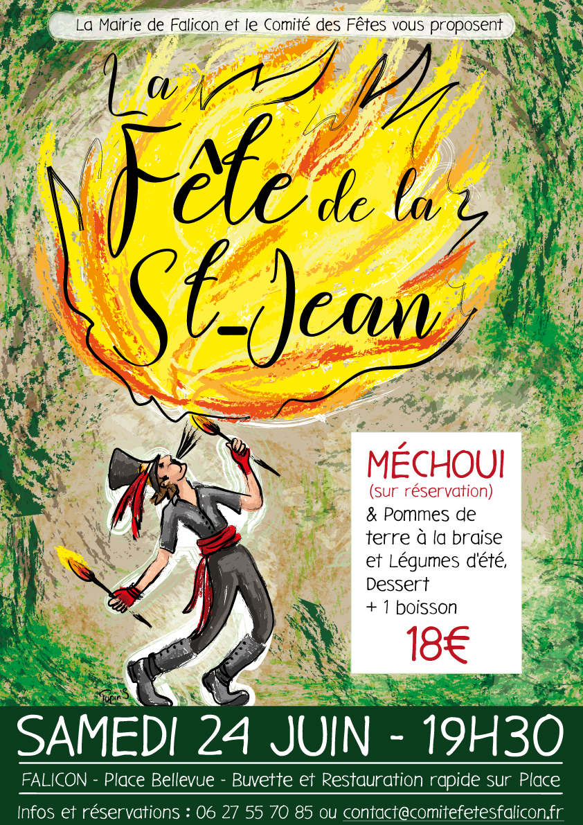 Réservation le site HelloAsso : https://www.helloasso.com/associations/comite-des-fetes-de-falicon/evenements/saint-jean-2024