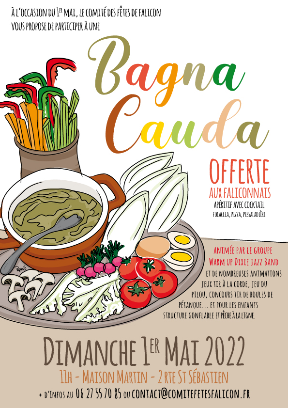 ► Pour l’occasion, une Bagna cauda accompagnée d’un cocktail sera offerte (pizza, pissaladière, focaccia et une buvette sont également prévus pour satisfaire tous les goûts ). L’ambiance musicale sera assurée par le groupe Warm up Dixie Jazz Band et de nombreuses animations sont prévues : jeux du tir à la Corde, jeu du pilou, pétanque (concours de tirs)… Et pour les enfants : structure gonflable et pêche à la ligne.