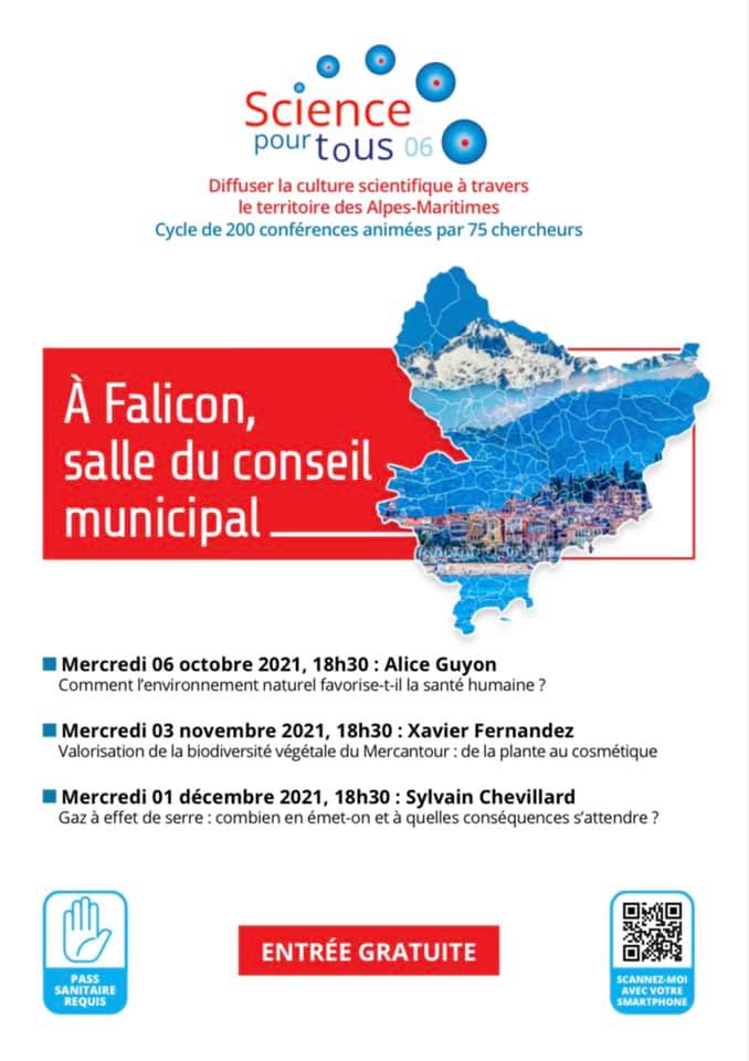 Nouveau, la Mairie de Falicon s’engage dans la diffusion de la culture scientifique en partenariat avec l’association « Science pour tous 06 » regroupant 75 chercheurs et enseignants-chercheurs bénévoles (CNRS, Université, INSERM, Mines Paris Tech…).