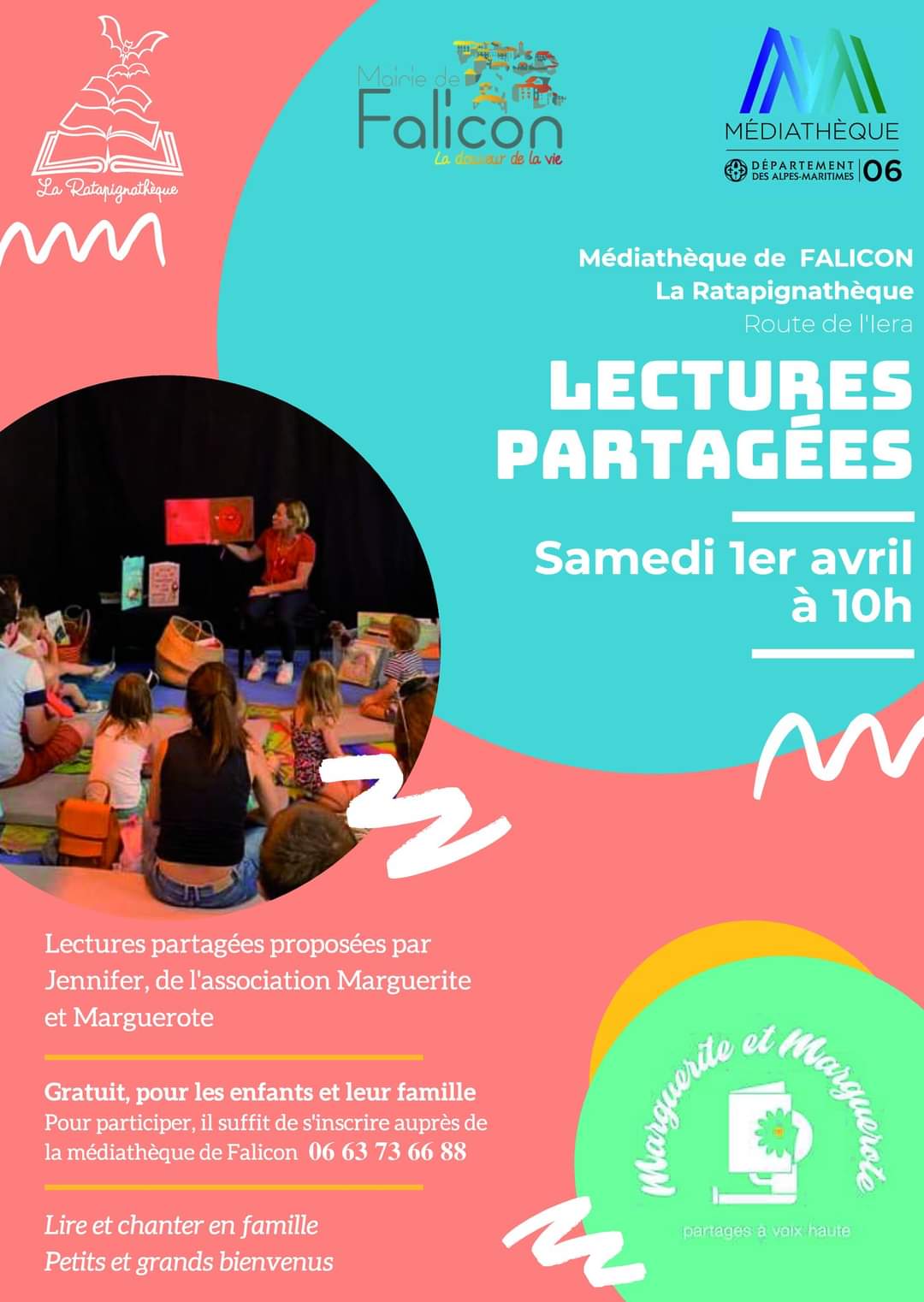 La médiathèque de Falicon, en collaboration avec la médiathèque départementale, vous invite à venir participer à sa première animation autour d’un atelier de lectures partagées animé par Jennifer de l’association Marguerite et Marguerote.