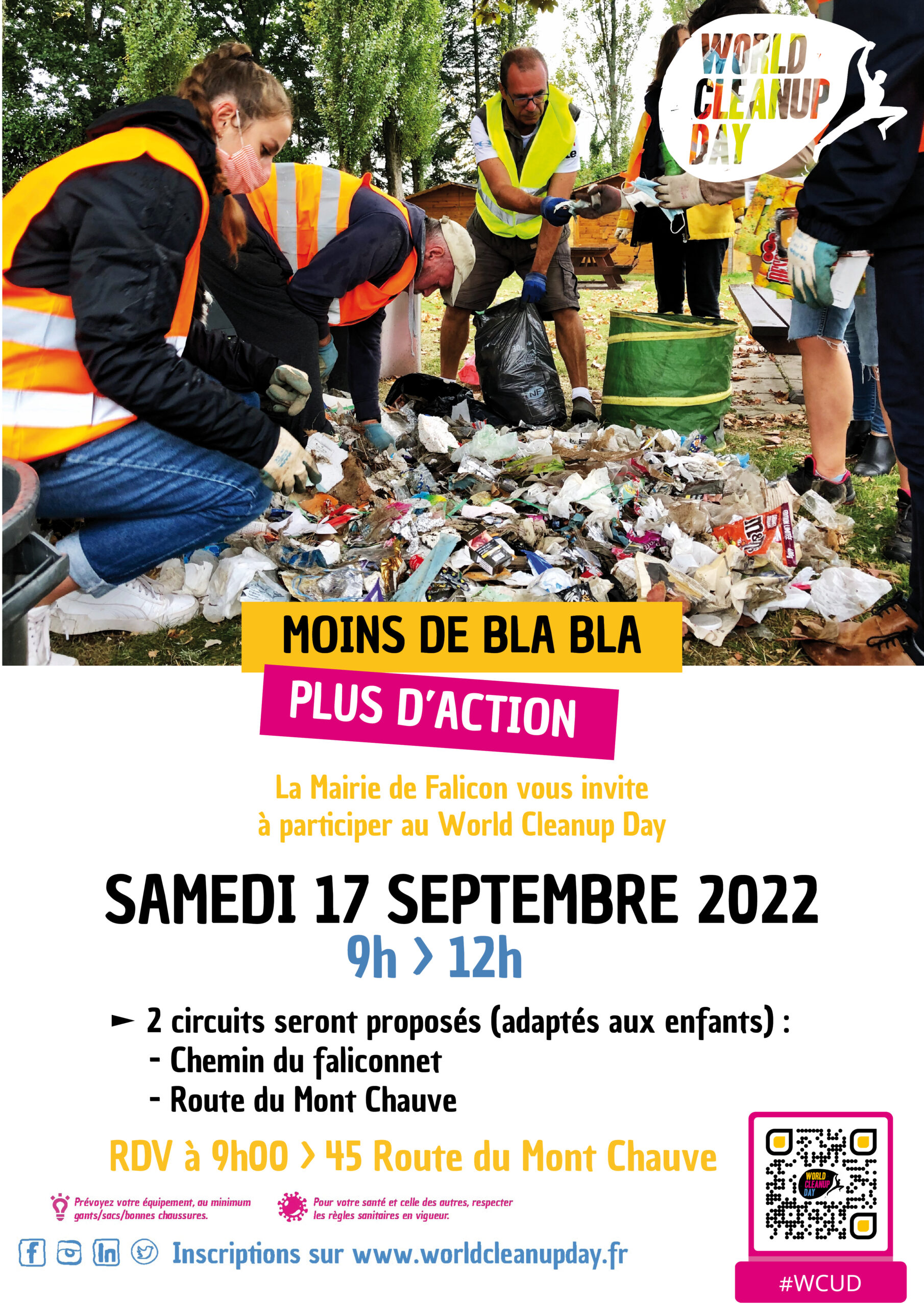Inscrivez-vous sur le site : www.worldcleanupday.fr et rendez-vous 9h au 45 route du Mont Chauve, avec votre kit du « petit ou grand nettoyeur » : gants, sacs poubelles, gilet ou t-shirt coloré ou fluorescent et votre bonne humeur !!!